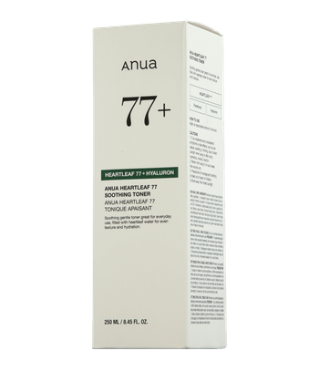 De Anua Heartleaf 77+ Hyaluron Soothing Toner is een verzachtende toner met hoogwaardig Heartleaf-extract. Het verzacht irritatie en brengt de huid zichtbaar in balans. De hydraterende formule harmoniseert het vochtgehalte van de huid, ondersteunt de pH-balans en zorgt er zo voor dat de huid in balans aanvoelt. Het is ideaal voor de verzorging van huidonzuiverheden en de gevoelige huid en zorgt voor een heldere, gekalmeerde en soepel gehydrateerde teint die aangenaam fris aanvoelt.