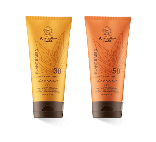 De Australian Gold Plant Based lijn is verkrijgbaar in verschillende versies: de Plant Based Lotion Zonnebrand SPF 30, de meer beschermende Plant Based Lotion Zonnebrand SPF 50 en de geurvrije Plant Based Lotion SPF 50 voor gezicht en lichaam.