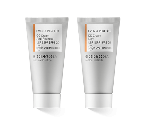 Sans Soucis dochteronderneming Biodroga uit Baden-Baden biedt met Biodroga Medical Institute Even & Perfect een speciale CC- en DD-crèmegamma aan. De hoogwaardige formules combineren een lichte tot hoge dekking met een ongeëvenaarde formule van actieve ingrediënten: