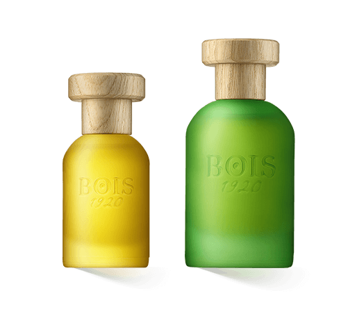 Een andere foto toont Cannabis Eau de Parfum naast Fruttata tegen een effen witte achtergrond. Het groen en geel van de flesjes gloeien intens op, terwijl de donkere schaduwen van hennepbladeren op de witte muur dansen. Voor de presentatie heeft het parfumhuis een uitgebreide brochure gemaakt waarin alle geuren in detail worden gepresenteerd. De flacon van Bois 1920 Cannabis staat naast de omdoos voor een woud van cannabisplanten. De geurpiramide staat vermeld in het Italiaans en Engels en een korte tekst beschrijft de buitengewone geurbeleving van het parfum.