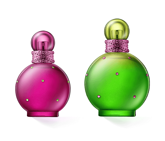 De flacon van Britney Spears Fantasy is bijzonder opvallend met zijn felroze kleur. De bol wordt afgewisseld met groene steentjes die in een lint aan de hals van de fles zitten. De spraykop wordt afgesloten door een semi-transparante roze dop. De flacon spreekt duidelijk de meisjesachtige kant aan en neemt je mee naar de wereld van dromen en fantasie. Zowel de flacon als de geur hebben iets speels, iets dat niet volwassen of volwassen is, maar juist heerlijk, troostend en verwarmend.