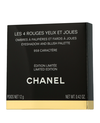 Chanel Les 4 Ombres Les 4 Rouges Yeux et Joues in het 958 Caractère kleurenpalet combineert vier expressieve tinten: gedurfd baksteenrood, verfijnd rozenhout, warm siennarood en zacht roségoud. Dit veelzijdige palet voor ogen en wangen biedt een perfecte balans tussen intensiteit en zachtheid. De zijdezachte textuur en harmonieuze kleuren zorgen voor moeiteloos mengen en een elegante look.