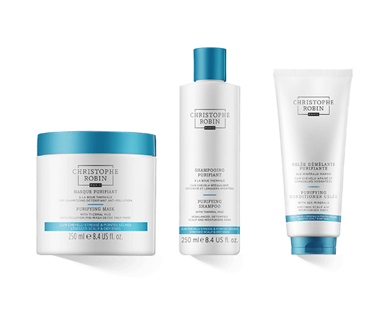 De Purifying Ontwarrende Gelée met Zeemineralen met zijn speciale gelei-textuur wordt dan gebruikt als conditioner en om het haar te ontwarren. Juju-schors is een ander natuurlijk actief ingrediënt. De Chinese dadel of borstbes is al te vinden als actief ingrediënt in veel Aziatische cosmetica. Voor haarverzorging heeft Christophe Robin Purifying het gecombineerd als een balancerende shampoo. Dit maakt het ideaal voor haar en hoofdhuid die gevoelig zijn voor roos, jeuk of overmatige talgproductie. Met 100 procent natuurlijke actieve ingrediënten is de verzorging mild genoeg voor dagelijks gebruik. Overtollige talg zou vanaf het eerste gebruik beter gereguleerd moeten worden.