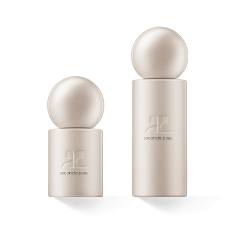 De flacon van Courrèges Seconde Peau weerspiegelt perfect de kalme elegantie van het parfum. De flacon heeft een lichtbeige kleur. De vloeistof rust in een cilinder waarop het merklogo is verwerkt in het gelakte glas. De naam van het parfum staat eronder in fijne zwarte letters, wat de elegante indruk versterkt. Hoe groter de flacon, hoe hoger de cilinder. Een bol zit naadloos op de rechte cilinder als stop. Door de glanzende lak lijkt de flacon op marmer en klassieke architectuur. Het straalt kracht en rust uit.