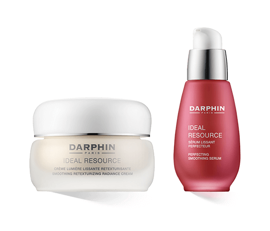Voor een intensieve behandeling van de rijpere, gestreste huid biedt de Darphin Ideal Resource lijn de voedende nachtcrème Smoothing Retexturising Radiance Cream en de twee maanden durende behandeling Youth Retinol Oil Concentrate. Beide verzorgingsproducten hebben een lichte, rijke textuur die prettig aanvoelt en snel door de huid wordt opgenomen. Een delicate bloemengeur verwent de zintuigen zodra het product wordt aangebracht. De formule in de Darphin Ideal Resource lijn, speciaal ontwikkeld door Darphin om te voldoen aan de behoeften van de rijpere huid, maakt gebruik van de kracht van geselecteerde plantenextracten voor anti-aging verzorging.