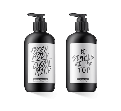 Het Doers of London Body Care assortiment wordt geleverd in zwarte plastic cilinders met witte labels. Een korte slogan en de productnaam staan schuin gedrukt op de voorkant, terwijl informatie over ingrediënten en toepassing te vinden is op de achterkant. Alle producten zijn verkrijgbaar in praktische pompflacons.