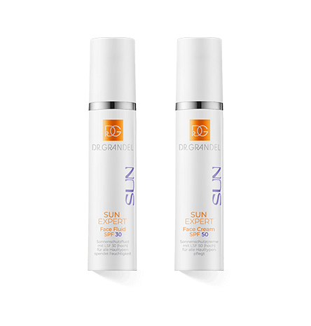 De voedende DR. GRANDEL Sun Expert Face Creams beschermen je huid tegen UV-straling. De zijdezachte textuur van de crèmes smelt in de huid zonder vet aan te voelen en geeft haar een aangenaam gehydrateerd en fris gevoel. Of het nu gaat om lichte dagelijkse bescherming of intensieve zonbescherming voor sterke straling - beide varianten bieden betrouwbare verzorging en bescherming tegen door licht veroorzaakte huidveroudering. De subtiele geur, fluweelzachte finish en huidflatterende formule maken van elk gebruik een klein verwenmoment.