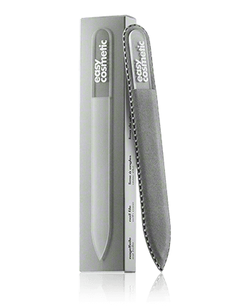 De easycosmetic Glazen nagelvijl glazen nagelvijl met beschermkap is elegant en ingetogen. Glazen nagelvijlen zijn bijzonder duurzaam en maken een zachte en efficiënte manicure en pedicure mogelijk. Deze eigenschappen maken ze tot een onmisbaar hulpmiddel voor nagelverzorging. De vijl wordt goed beschermd door de grijze stoffen hoes en ziet er bijzonder elegant uit in combinatie met de witte letters.