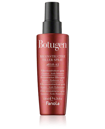 De Fanola Botugen Reconstructive Filler Spray is een voedende spray voor beschadigde haartypes. De spray wordt aangebracht na het wassen en hoeft niet te worden uitgespoeld. Het helpt het haar te hydrateren en is ook ontworpen om het stylen te vergemakkelijken. De lichte sprayformule is niet bedoeld om het haar te verzwaren, maar zorgt toch voor meer hold en volume.