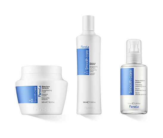 Kroeshaar en gespleten haarpunten worden getemd en gevoed met de producten van Fanola Smooth Care. Katoenolie, lijnzaadolie en cacaoboter zorgen voor vocht, vitaminen en mineralen.
