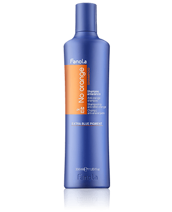 Fanola No Orange Anti-Orange Shampoo is een speciaal verzorgingsproduct met blauwe kleurpigmenten. Ze helpen ongewenste oranje of kopertinten in donkere haarkleuren te neutraliseren. De shampoo kan gebruikt worden voor natuurlijke en gekleurde haarkleuringen. Hij hoeft maar drie tot vijf minuten in te werken om de gewenste kleur te behouden.