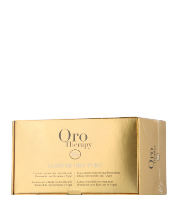 Haar dat tot diep in de haarstructuur wordt versterkt en hersteld - Fanola Oro Therapy 24K Lotion Oro Puro is een diepwerkende haarbehandeling in twaalf ampullen. De lotion met arganolie helpt het haar te regenereren. Het ontwart en maakt het heerlijk zijdezacht en glad. Pluis krijgt geen kans met de lotion. Voor zeer droog en beschadigd haar.