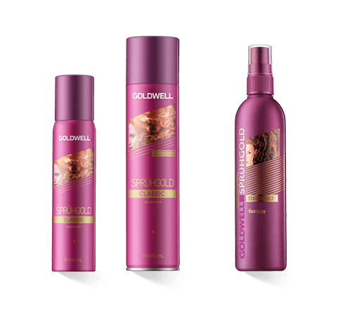 Alle producten in het Goldwell. assortiment Alle producten van Sprühgold zijn dermatologisch getest. Ze zijn zacht voor haar en hoofdhuid en zijn ook geschikt voor gevoelig haar. Goldwell haarlak beschermt de natuurlijke haarkleur en zorgt er ook voor dat gekleurd haar zijn kleur langer behoudt. Met Goldwell haarlak is zelfs uitgebreide styling een fluitje van een cent, thuis, in de salon of onderweg. Ontdek de professionele haarlak uit het Goldwell. Sprühgold assortiment.