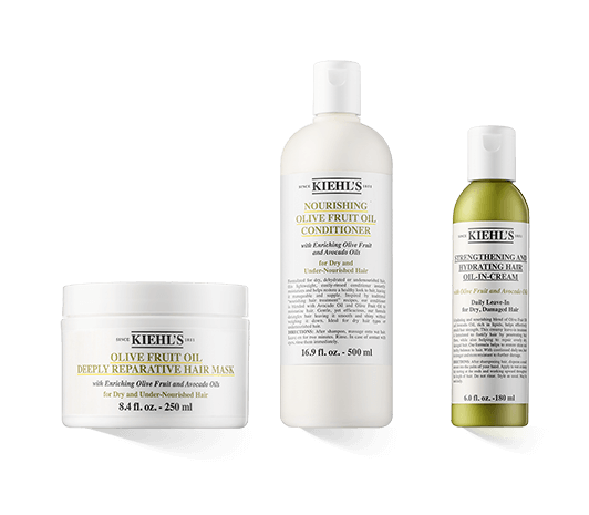 De Kiehl's Olive Fruit Oil verzorgingscollectie levert intensief vocht en waardevolle voedingsstoffen aan het haar. Regenererende producten voor droog en beschadigd haar zijn ontwikkeld rondom olijfolie en deze natuurlijke oliën staan centraal in het concept. Ze zijn zowel mild en compatibel met alle haartypes, als rijk aan tal van heilzame voedingsstoffen. Drie verschillende oliën vormen samen het verzorgingstrio Kiehl's Olive Fruit Oil.