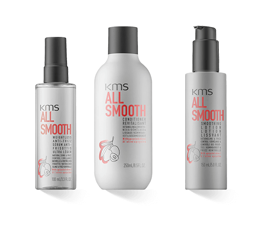 kms AllSmooth, luxe anti-frizz verzorging voor glad, soepel haar met een natuurlijke glans. Voor zichtbaar gecontroleerd, zijdezacht haar - dag na dag.