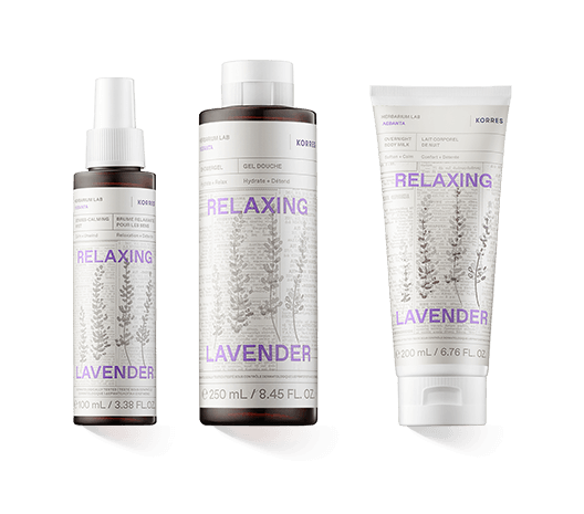 Korres Relaxing Lavender is een heel bijzonder assortiment, omdat het huidverzorging, wellness en aromatherapie op efficiënte wijze combineert. Dit maakt de producten tot de ideale verwenbehandeling voor 's avonds en helpt je om een gezonde en rustgevende slaap te vinden. Ze vormen de basis voor een rustgevend ritueel dat zowel je huid als je zintuigen revitaliseert.