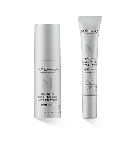Met de MÁDARA Botanic Niacinamide-serie is het Letse natuurcosmeticabedrijf MÁDARA erin geslaagd een echte innovatie te creëren. Het unieke huidverzorgingscomplex bevat een alternatief niacinamidecomplex met plantaardige actieve ingrediënten die de teint verfijnen en de huid laten stralen - net zo effectief als conventionele niacinamide.
