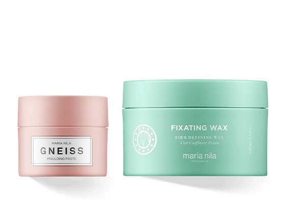 Het vegan stylingassortiment met minerale deeltjes bestaat uit zes producten: Maria Nila Minerals Gneiss Moulding Paste is geschikt voor alle haarlengtes. Het geeft het haar body en volume door de haarvezels te verdikken met zijn minerale deeltjes en het kapsel stabiliteit te geven. Het wordt in handdoekdroog haar gemasseerd en naar wens gestyled.