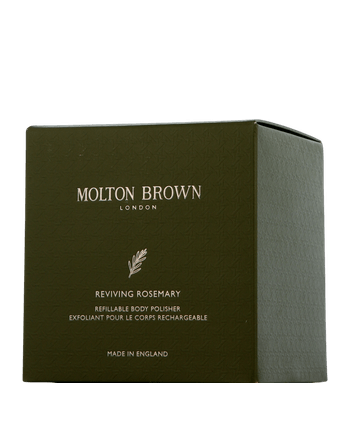 Reviving Rosemary Navulbare Lichaamspolijstmachine - Revitaliserende scrubervaring. Verfris je huidverzorgingsroutine met de Molton Brown Reviving Rosemary Navulbare Body Polisher. Deze zachte, herstellende lichaamsscrub verwijdert dode huidcellen en maakt de huid zijdezacht, terwijl revitaliserende noten van rozemarijn, geranium en patchoeli de zintuigen stimuleren. Meng de formule voorzichtig voor het aanbrengen, verdeel over de vochtige huid met ronddraaiende bewegingen en spoel grondig af met warm water. Een langdurige, aromatische schoonheidspauze voor huid en zintuigen.