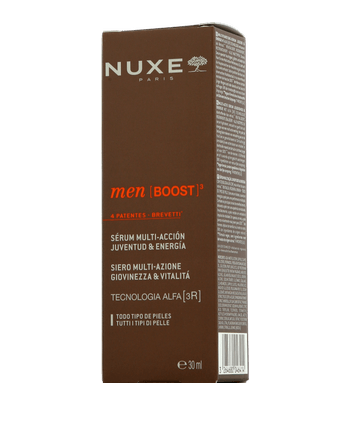 De Nuxe Men Boost Sérum Multi-Actions Jeunesse & Energie is een krachtig huidverzorgingsserum met de innovatieve ALFA [3R] technologie, die effectiever is dan retinol, en het gepatenteerde essenbastolextract. Het revitaliseert, regenereert en maakt de huid zichtbaar gladder, vermindert rimpels en hydrateert intensief. De lichte, niet-vette textuur smelt onmiddellijk in de huid, terwijl de houtachtig-frisse geur voor revitalisatie zorgt. Het serum is ideaal voor mannen die een jeugdig uitziende, getonifieerde en frisse huid willen.
