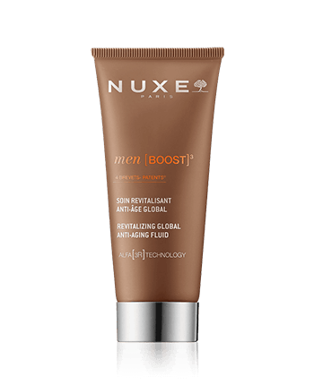 Nuxe Men Boost Soin Revitalisant Anti-Âge Global is een zeer effectief huidverzorgingsproduct voor mannen die de eerste tekenen van huidveroudering willen tegengaan. Dankzij de innovatieve ALFA [3R] technologie - effectiever dan retinol - en de toevoeging van oleo-extract van essenbast, hydrateert het intensief, strijkt het rimpels glad en verbetert het zichtbaar de stevigheid van de huid. De lichte, niet-vette textuur wordt snel opgenomen, terwijl de frisse, houtachtige geur de zintuigen doet opleven. Het resultaat: een gerevitaliseerde, stevige en jeugdig uitziende huid.