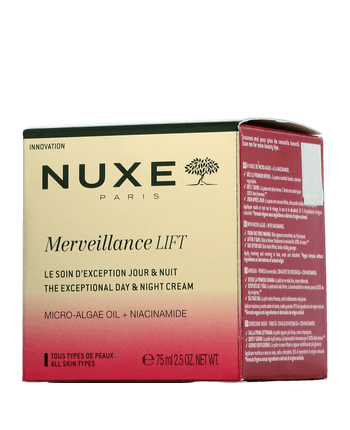 De Nuxe Merveillance LIFT Exceptional dag- en nachtcrème pakt rimpels aan en zorgt voor een zichtbaar stevigere en gladdere huid. Het innovatieve serum met microalgenolie combineert de kracht van vier miljard actieve werkstofcellen per druppel en ontvouwt samen met niacinamide zijn verstevigende en gladmakende werking. Dag na dag ziet de huid er jeugdiger, stralender en egaler uit. Het is een luxe huidverzorgingservaring voor de veeleisende huid die de tekenen van veroudering zichtbaar corrigeert.