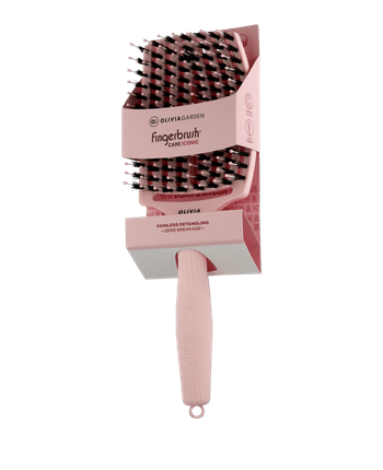 De Olivia Garden Fingerbrush Care Iconic L in pastelroze zorgt voor een bijzonder aangename stylingervaring en ontwart het haar moeiteloos en pijnloos. Dankzij het ergonomische, lichte ontwerp ligt de haarborstel perfect in de hand en glijdt hij zachtjes door het haar zonder het te beschadigen of te breken. De innovatieve, vingervormige borstelstructuur past zich perfect aan de vorm van het hoofd aan en masseert de hoofdhuid op een kalmerende manier. Verschillende borstelhaarcombinaties maken het de ideale beauty tool voor elk haartype.