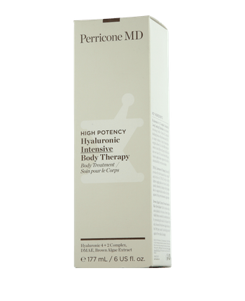 Perricone MD High Potency Hyaluronic Intensive Body Therapy is een vederlichte lichaamstherapie met vier vormen en twee natuurlijke bouwstenen van hyaluronzuur die zorgt voor intensieve en langdurige hydratatie. De snel absorberende, niet-vette formule beschermt de vochtbarrière, maakt kreukelige plekken glad en zorgt voor een zichtbaar zachtere, stevigere en egalere huid. Extra DMAE verstevigt de huid, terwijl bruin algenextract revitaliseert met aminozuren en antioxidanten. Masseer 's ochtends en 's avonds zachtjes in voor een vol, jeugdig en stralend resultaat op lichaam en geest.