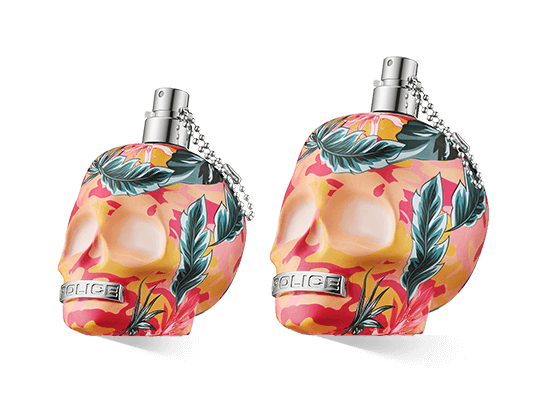 Het Italiaanse merk Police presenteert de vrouwengeur To Be Exotic Jungle for Woman in de kenmerkende schedelvormige flacon van het merk. Specifiek voor het parfum is de glazen flacon kleurrijk in de exotische tinten oranje en roze in een creatief patroon dat wordt aangevuld met groene bladertakken en roze-witte bloemen in junglestijl. Het kleurenpatroon identificeert de geur Police To Be Exotic Jungle Woman. De glanzende roestvrijstalen verstuiver, waaraan een draagketting is bevestigd, zit direct op het hoofd. De merknaam Police in reliëf staat op een glanzend metalen plaatje ter hoogte van de mond van het schedelflesje. De flacon ligt prettig in de vrouwelijke hand en brengt het eau de parfum met zijn fascinerende geur met optimale finesse aan op de huid.