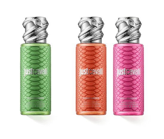 De Just Cavalli Hair & Body Mists, een geur voor elk moment van de dag, zijn lichte, voedende geursprays voor dagelijks gebruik die subtiel worden aangebracht op de huid en het haar.
