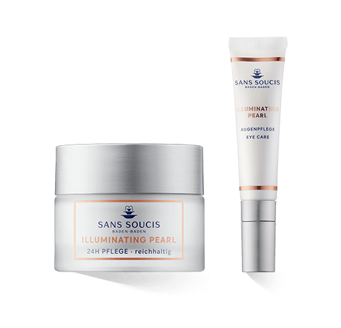 Sans Soucis Illuminating Pearl huidverzorging bevordert een egale en stralende teint zodat deze haar jeugdige uitstraling langer kan behouden. Eiwitten uit parels worden gebruikt voor een betrouwbaar anti-aging effect tegen lijntjes en rimpels en voor een mooie gloed. Het actieve ingrediënt stimuleert de huideigen productie van elastine en collageen. Zo kan de elasticiteit van de huid behouden blijven. Tegelijkertijd belooft de verzorging een positief effect op overmatige pigmentatie. Hierdoor kan de huid er snel oneffen en ouder uitzien.