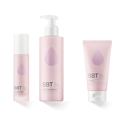 SBT Sensitive Herstellende Crème met veganistische squalaan, kokosglyceriden, ectoïne en panthenol hydrateert de gevoelige huid dagelijks en verzacht irritaties. De SBT Sensitive SOS Balsem hydrateert de bijzonder gestreste huid diepgaand en versterkt de beschadigde huidbarrière. Vitamine B5 en Centella Asiatica hebben een wondhelende werking, terwijl squalaan de huid verzacht en beschermt tegen vrije radicalen. SBT Sensitive Kalmerende Oogcrème beschermt en verzorgt de gevoelige huid rond de ogen. Met Cell Complex+, ectoïne en plantaardige glycosiden vermindert het rimpels en fijne lijntjes en beschermt het de gevoelige huid rond de ogen tegen uitdroging en celstress. Het SBT Sensitive Overnight Recovery Mask biedt een of twee keer per week intensieve hydratatie en vermindert zichtbare tekenen van huidstress zoals roodheid en droogheid. Het slaapmasker bevat versterkend palmitinezuur, hydraterende glycosiden en kalmerend tijgergasextract.