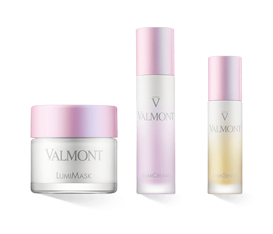 Valmont Luminosity bestaat uit vier componenten: de LumiPeel Glow Lotion met exfoliërende PHA's en plantenenzymen, het verhelderende LumiSence Serum Water, de LumiCream Glow Booster voor dagverzorging en het rijke, huidvernieuwende LumiMask.
